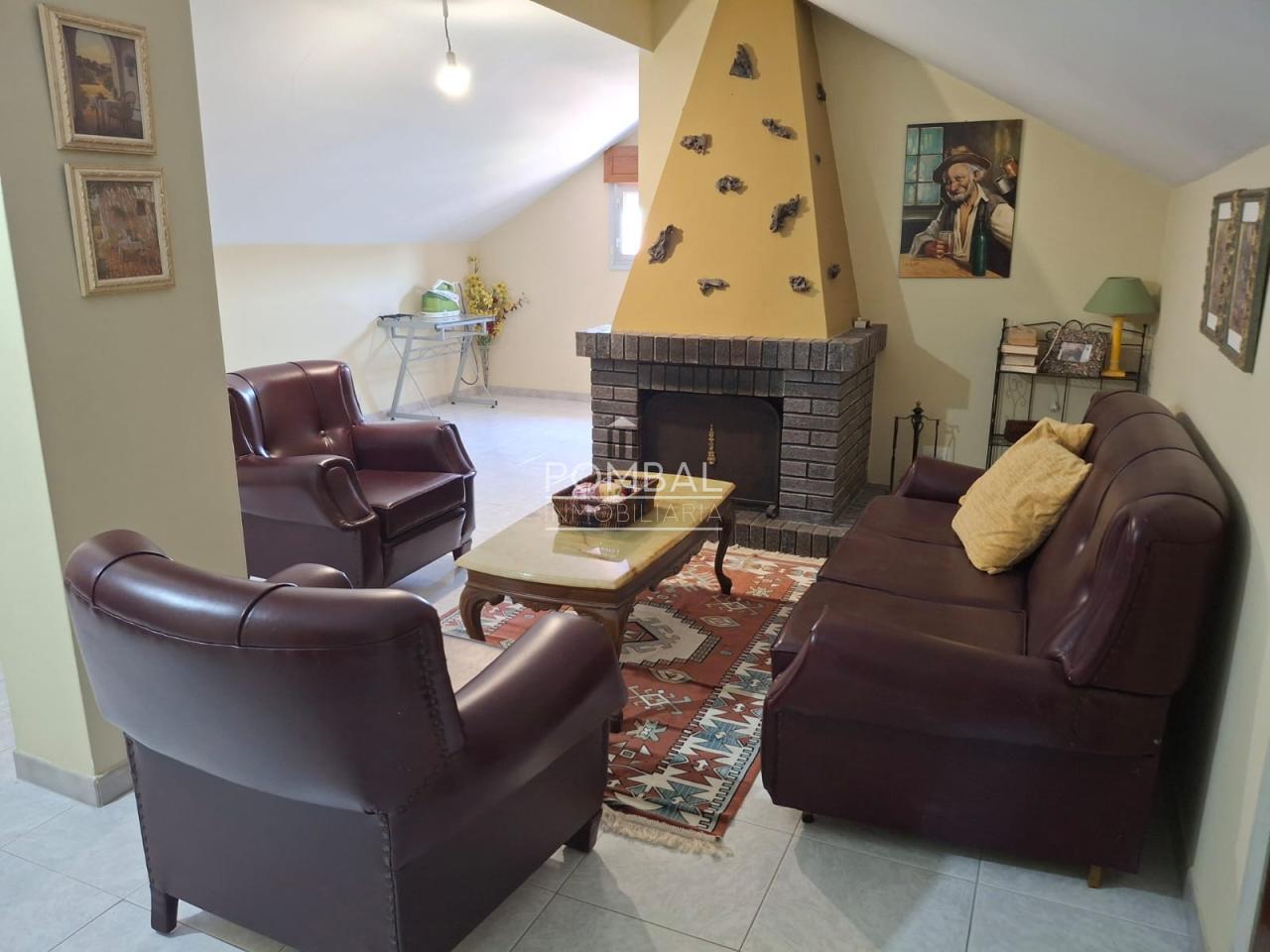 Planta bajo cubierta: salón grande ideal para eventos familiares con chimenea francesa, 1 dormitorio, 1 aseo y zona de almacenamiento.
